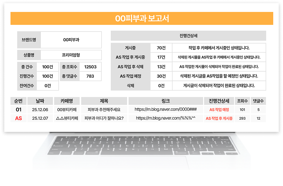 마케팅 결과 보고서를 광고주에게 전달합니다.