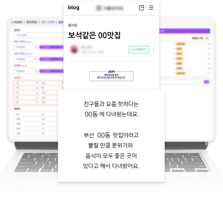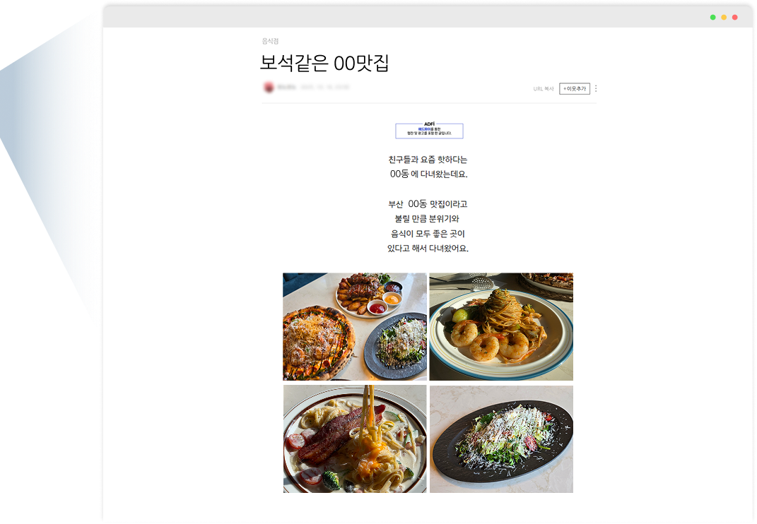 전문 작가가 직접 작성한 원고와 광고주의 사진을 결합해
