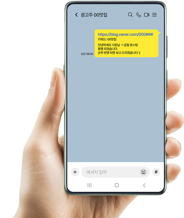 광고주님께서 원하는 핵심 키워드를 확정하고 홍보에 필요한 원고 및 사진 자료를 전달받아,